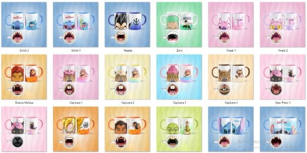 Plantilla Tazas Caricaturas Bocas Infantiles Diseños para sublimar #t555