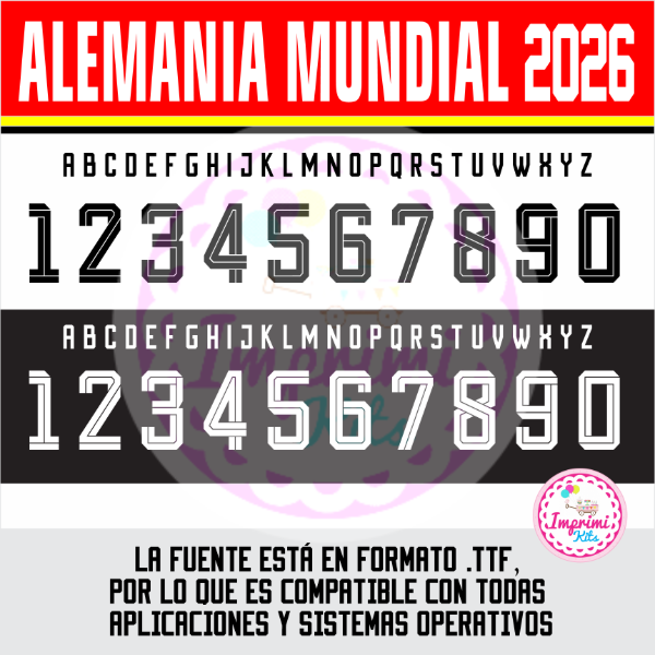 Tipografia Alemania 2026 Mundial Camisetas Ttf Dorsal Números DTF